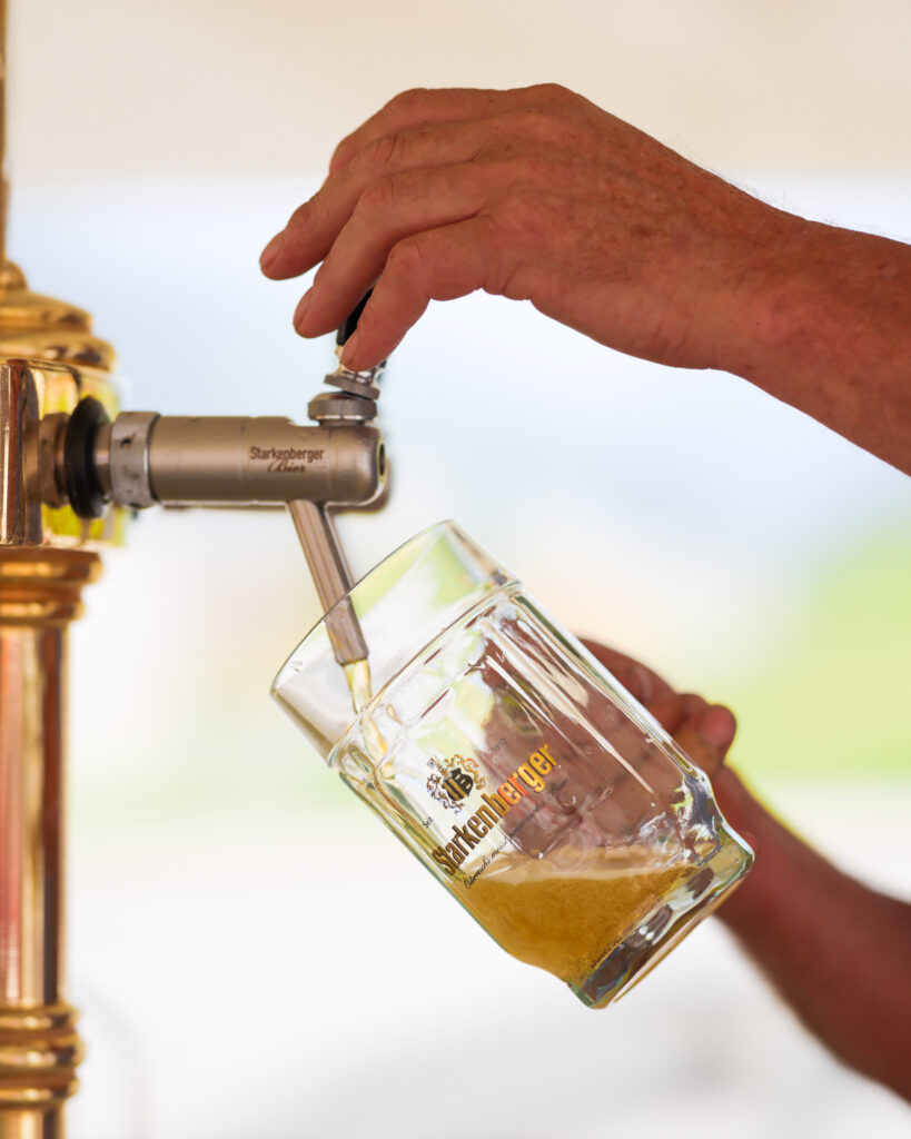 Bratwurst und Hennen vom Fleischhof Oberland lockten viele in die Langgasse. Mittags sicherten sich die Gäste einen Platz vor Ort und verkosteten die Grillhendln, der Ansturm auf das leckere Grillgut sorgte zwei Stunden lang für Warteschlangen vor der Grillstation des Fleischhof-Teams. Starkenberger Natur Radler und Heimatbier gab‘s in Aktion – entsprechend viel zu tun hatten die Jungs beim Rampenverkauf. Knapp 700 Besucher:innen starteten bei schönem Wetter und mit Feierlaune ins Pfingstwochenende. Nach einem Gewitter am Nachmittag ging es gegen Abend weiter, Peter Solo animierte zum Tanzen und Schunkeln.